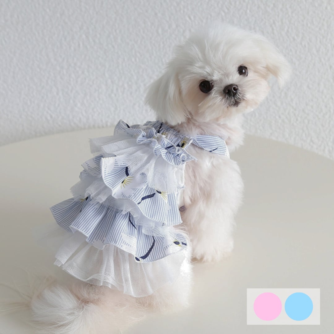 ストライプ&フラワーチュールワンピース