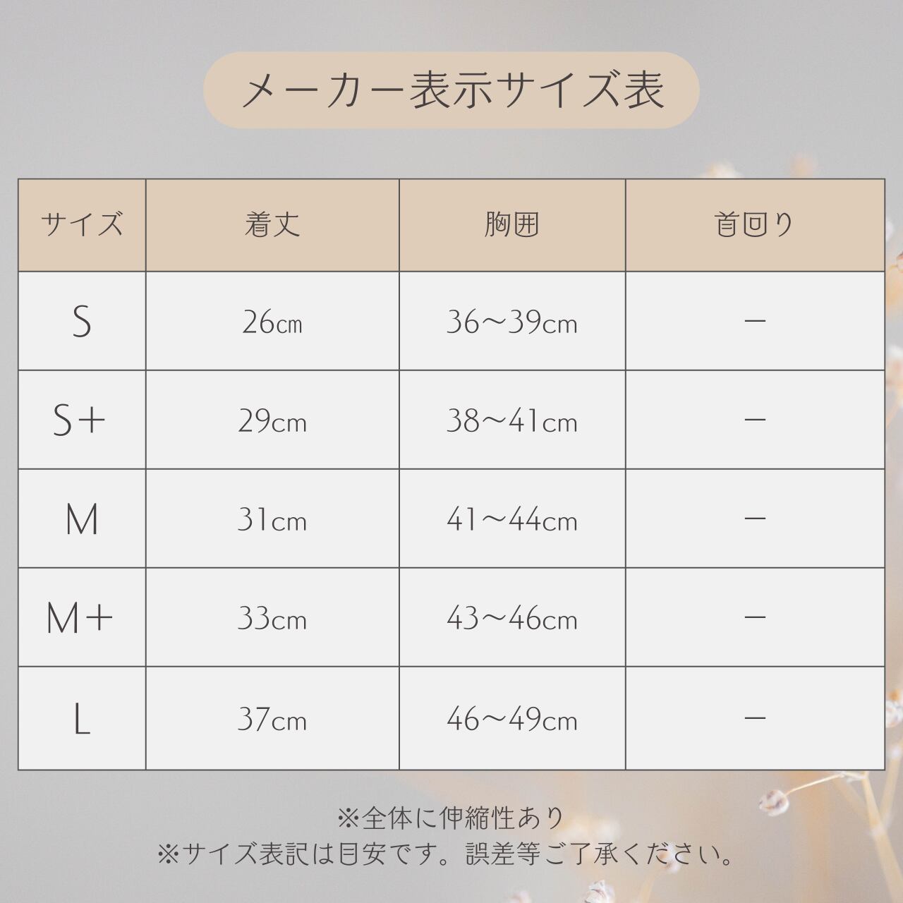 気持ちよく着られるよう、余裕のあるサイズをお選びくださいませ♪